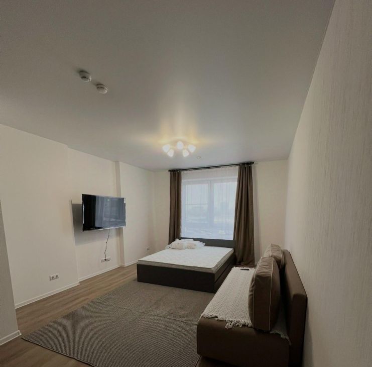 В квартире есть диван, двухспальная кровать, шкаф, телевизор, кондиционер, шторы блэкаут, новый матрас.