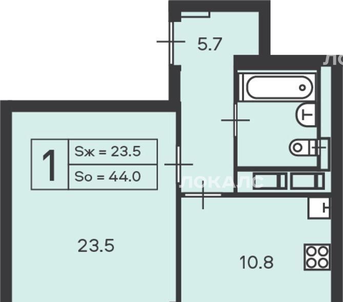 1-к кв. Москва Амурская ул., 1к1 (45.0 м²)