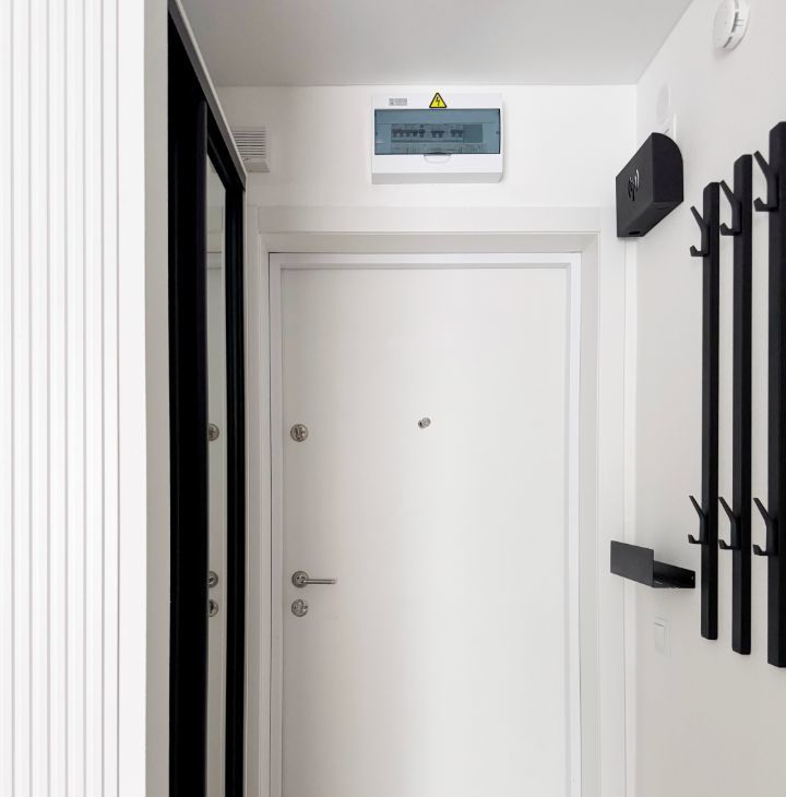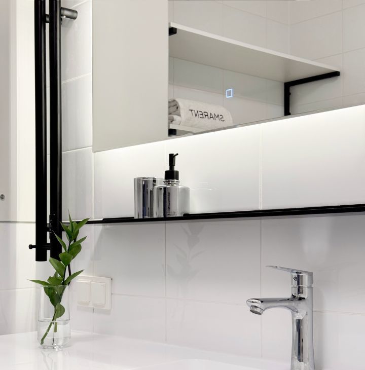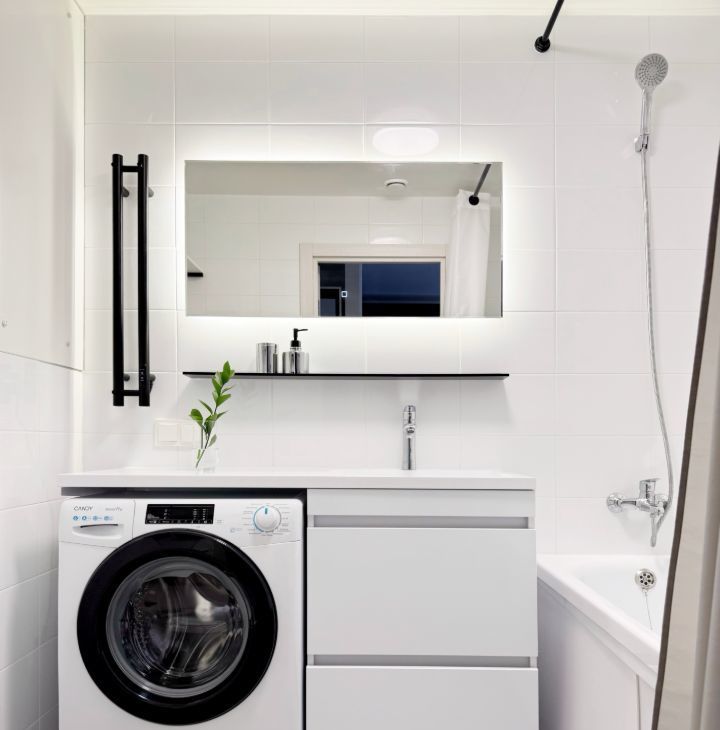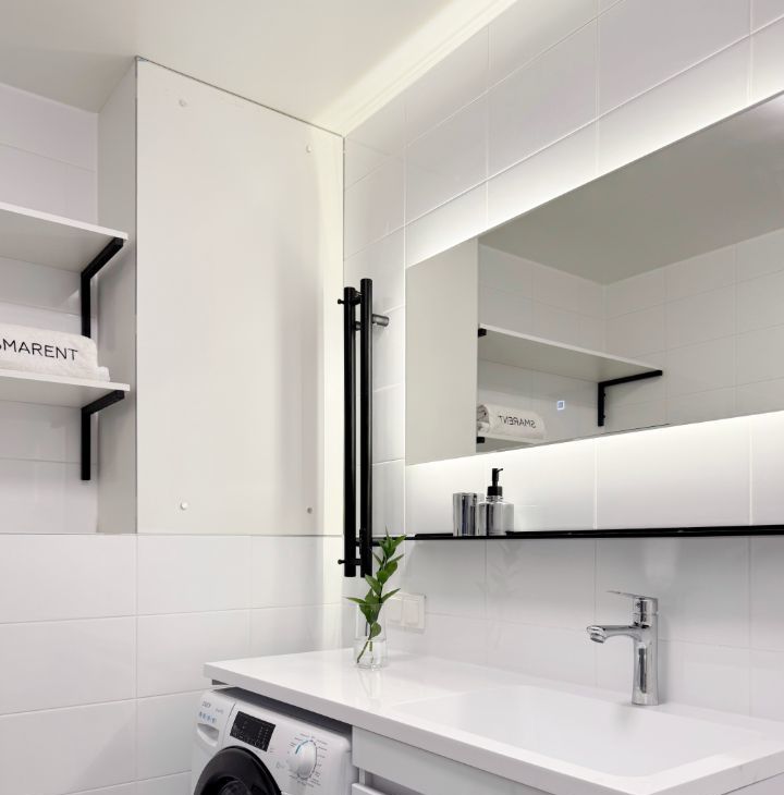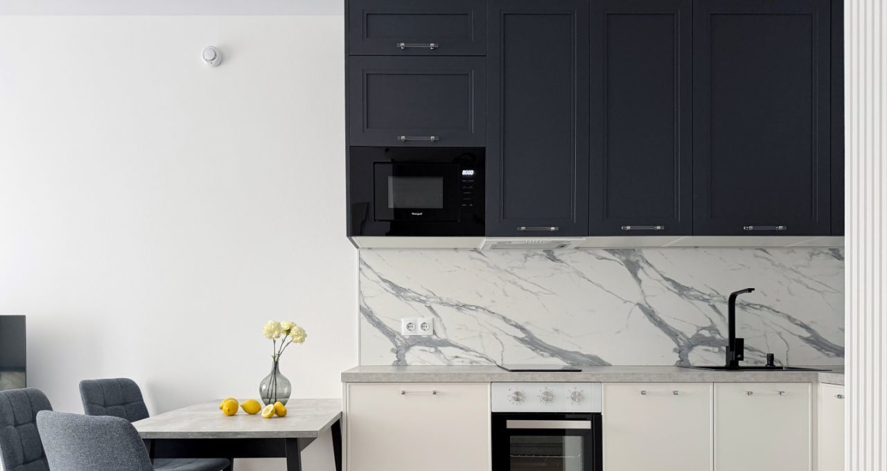 Бытовая техника: стиральная машина, холодильник, духовой шкаф, микроволновка, варочная панель, посудомоечная машина, электрический чайник, телевизор, кондиционер.