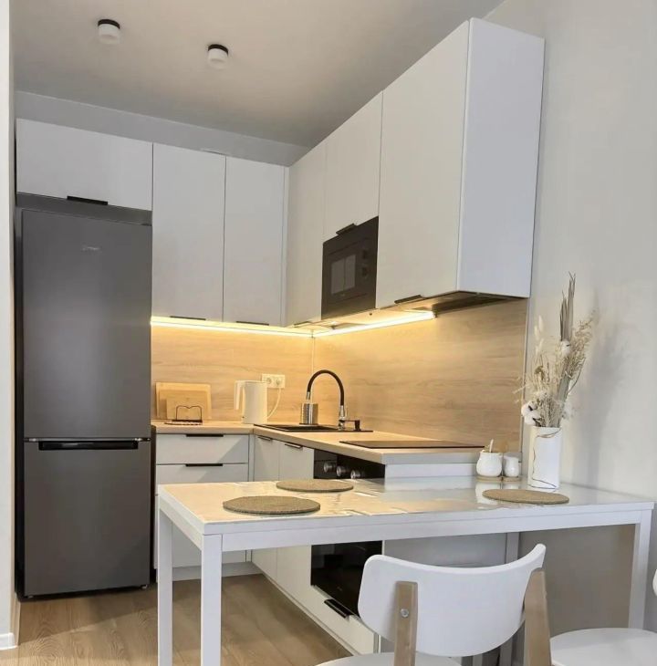 Наполнение продумано собственником до МЕЛОЧЕЙ! Полностью меблированная квартира! Кухня оборудована техникой. А именно: варочная панель, духовой шкаф, вытяжка, посудомоечная машина, СВЧ, чайник и вместительный холодильник. Кухня-гостиная с уютным раскладным диваном, оборудованная ТВ-зоной. Дополненная рабочая зона, которую также можно использовать как туалетный столик. В спальне комфортная двуспальная кровать. В квартире установлен кондиционер, будет комфортно в любую погоду. Много места для хранения ваших вещей.