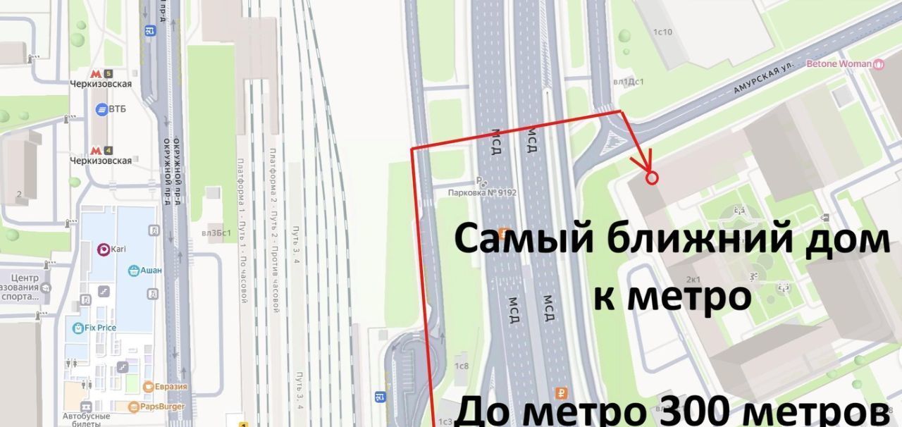 Дом расположен в 5 минутах пешком от станции метро Черкизовская и МЦК Локомотив.