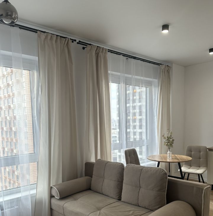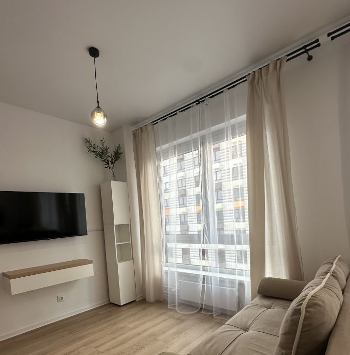 Впервые сдается в долгосрочную аренду (договор на 11 месяцев) квартира в новом, красивом доме 2026 г.постройки. Светлая, современная, просторная квартира от собственника. Оснащена новой мебелью и техникой: холодильник, микроволновая печь, эл.чайник, вытяжка, электроплита, кондиционер, телевизор, стиральная машина, кровать Аскона 140*200 с ПМ, ортопедический матрас Аскона, наматрасник, раскладной диван, стулья, стол, шкаф-пенал, тумба. В квартире имеется оборудованная гардеробная комната.
