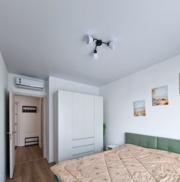 В спальне 2-спальная кровать, прикроватные тумбочкм, гардероб, кондиционер.