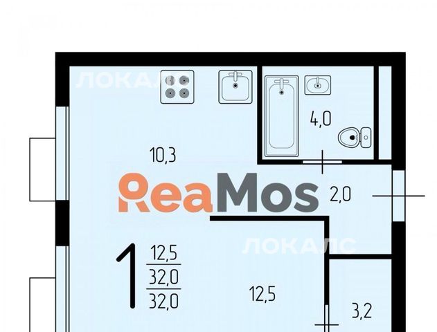 - Общая площадь — 32 кв.м, жилая — 12,5 кв.м.