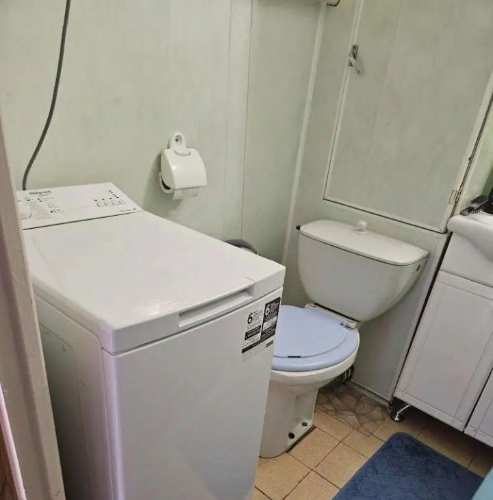 Санузел совмещенный, оборудован ванной и стиральной машиной.