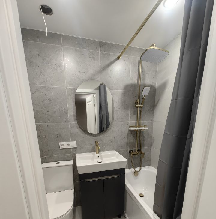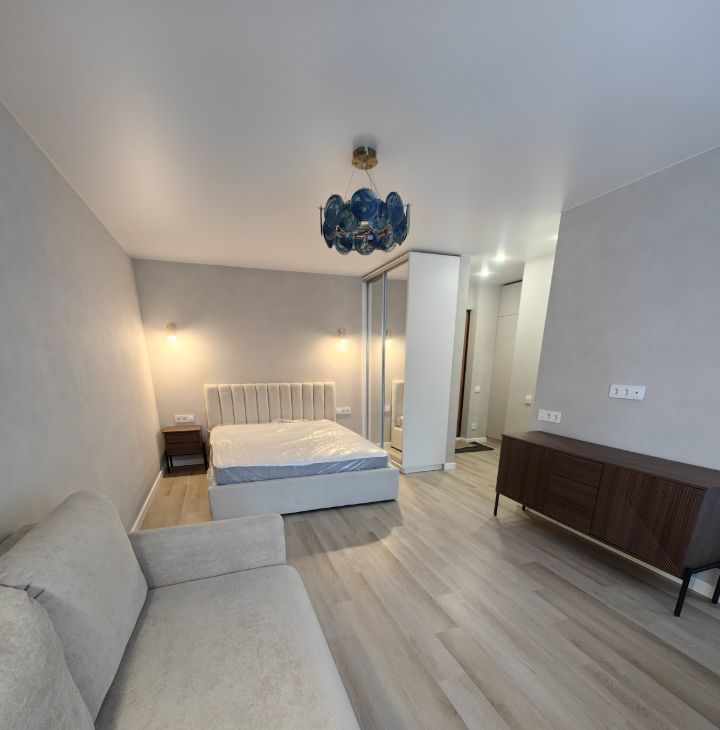 Квартира со свежим дизайнерским ремонтом и полностью готова к проживанию. В комнате и на кухне есть вся необходимая мебель, а также современная техника: холодильник, посудомоечная и стиральная машины. Просторная ванная комната с ванной, совмещённый санузел и окна, выходящие во двор, создают атмосферу уюта и спокойствия.