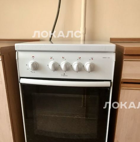 На кухне наборная мебель, гaзовая плита, электрический духовой шкаф, xoлодильник.