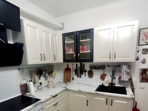 Есть все необходимое для комфортного проживания: кровать с хорошим матрасом, диван, посудомоечная машина. Окна выходят в тихий зеленый двор.