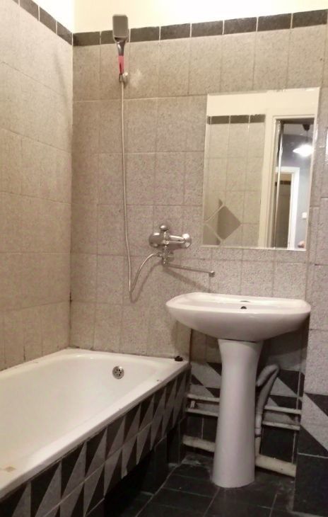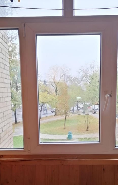 Санузел совмещенный, застекленный балкон-лождия с видом на сквер. 2 этаж 17-этажного кирпичного дома.