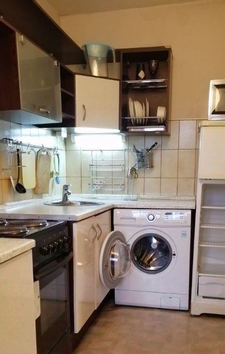 Кухня укомплектована, холодильник, плита, духовка, микроволновка, стиральная машинка.