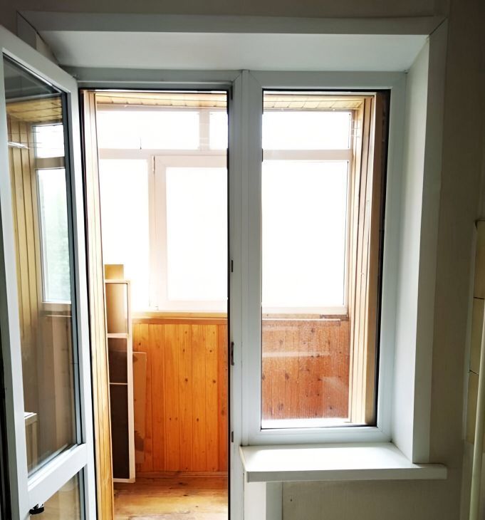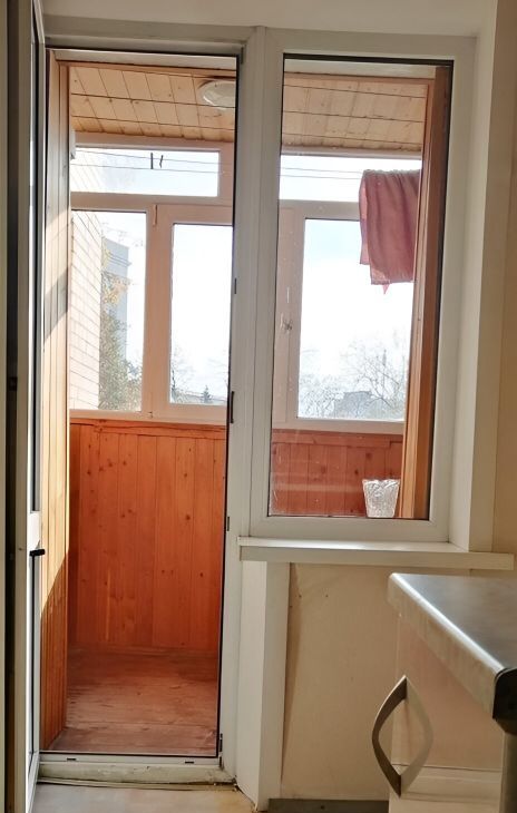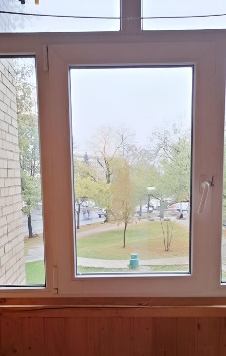 Санузел совмещенный. Застекленная лождия с видом на сквер. 2 этаж 17-этажного кирпичного дома.