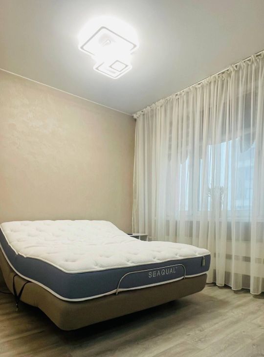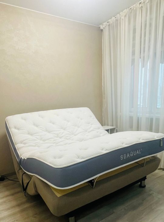 В комнате кровать Askona Ergomation 450 (размеры 160х200) с анатомическим матрасом, подъемным механизмом и функцией массажа.
