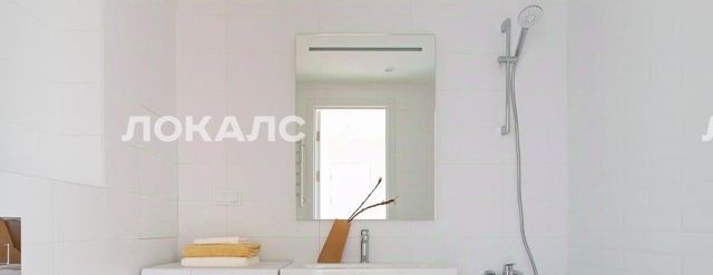 В квартире совмещенный санузел с ванной, раковиной и зеркалом с подсветкой.
