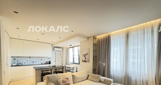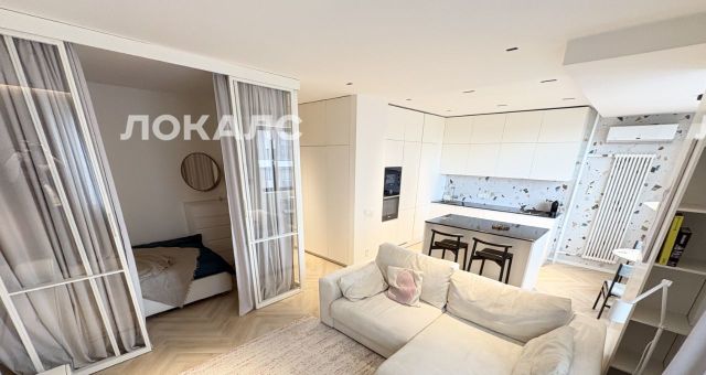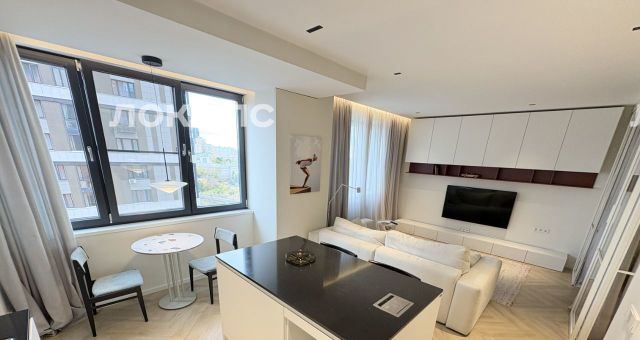 Современный ремонт в светлых тонах, по проекту известного архитектора. Ремонт изначально делали не на продажу и не для аренды, а для себя. О квартире написана статья в известном издательстве, как об одной из самой стильной и функциональной, комфортной квартире. В квартире кухня-гостиная и отдельно за стеклянными витражными перегородками спальня, но фото хорошо видно. Множество мест хранения. Санузел с ванной. Гардеробная. Кондиционер. В санузле также есть вместительный шкаф. Сантехника: Jacob delafon, ideal Standart. На кухне : смеситель Grohe, мойка OMOIKIRI. Микроволновка, духовка Bosch. Варочная панель, посудомойка Electrolux. Гриль SMEG. Холодильник LIEBHER. Мебель Mr doors, кухня Scavolini. Столешница кварц. Светильники итальянские светодиодные FLOS, Vibia. Потолки гипсокартон с шумоизоляцией. Красивый вид из окна.