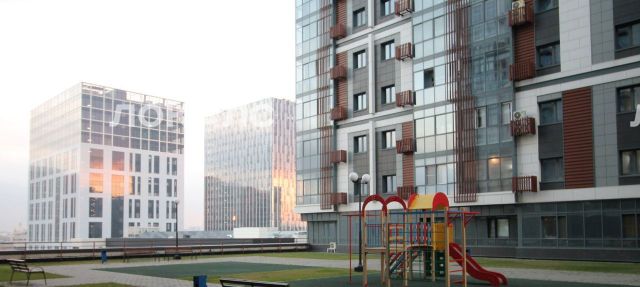Закрытый двор с детской площадкой находится на уровне 7 этажа, за счёт чего обладает красивым панорамным видом, в т.ч. на Москву Сити, МГУ и район Даниловский)
