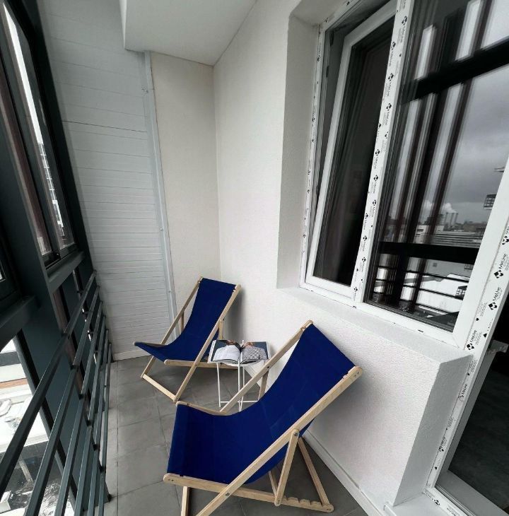 В квартире также есть кондиционер, а особый шарм ей придает застекленный балкон с шезлонгами!