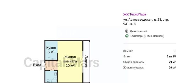 1-к кв. Москва Автозаводская ул., 23с931к3 (29.0 м²)