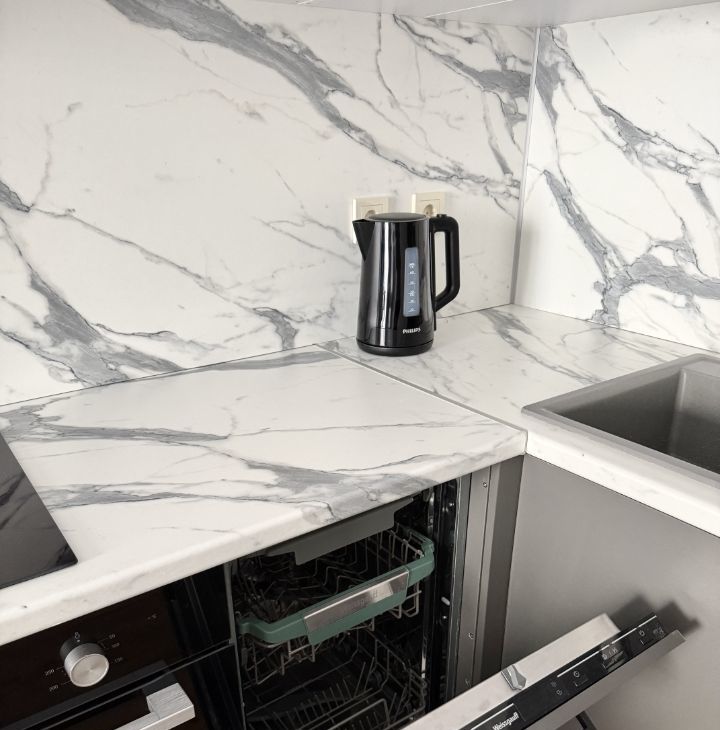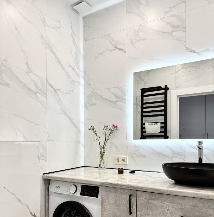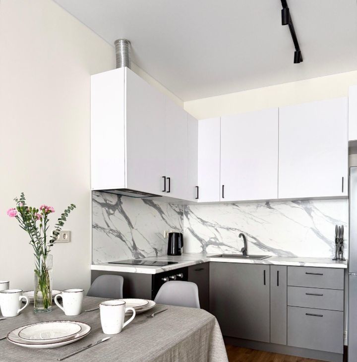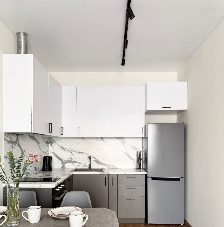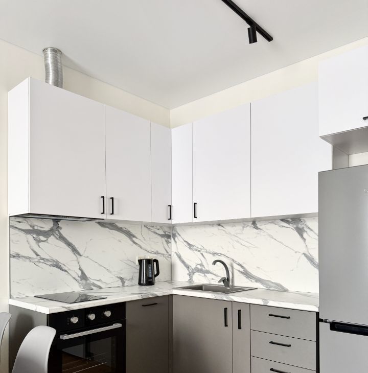 Бытoвая тeхника: чайник, варочная панель, вытяжка, холодильник, стиральная машина, телевизор, духовой шкаф, полотенцесушитель, посудомоечная машина, установлен бризер.