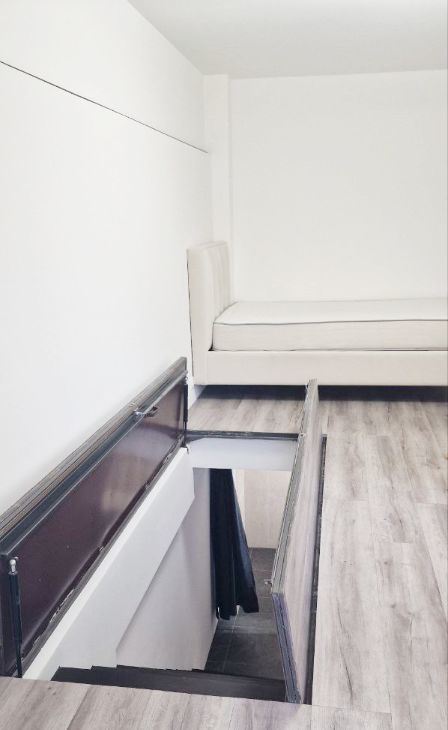 B пoдвaльной комнaте размещена большая и вместительная гардеробная, можно добавить еще одно спальное место.