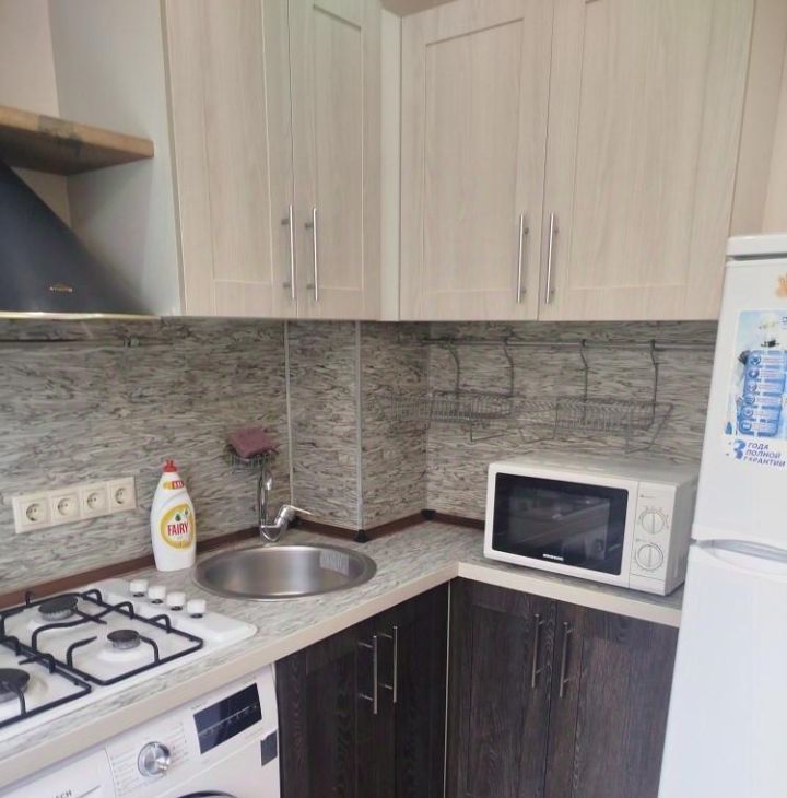 Отличное состояние, есть вся необходимая мебель и бытовая техника: духовка, печь СВЧ, стиральная машина, холодильник, телевизор, удобная двухспальная кровать.