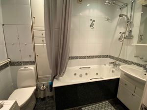Большая кухня с гарнитуром девять метров, газовая плита, духовой шкаф, встроенный холодильник. Чистая и светлая комната меблированная современной мебелью: новая кровать и новый матрас, диван двуспальный, стенка современная, ЖК телевизор, кондиционер, шторы. Современный интерьер. Лоджия застекленная. Совмещённый сан.узел, джакузи, стиральная машинка автомат Бош.