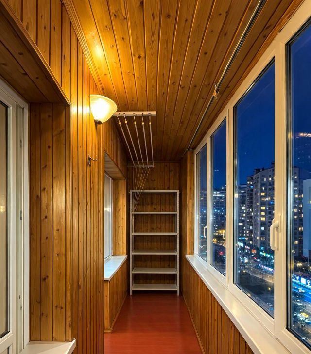 Огромная утеплённая лоджия (45 м²) отличное место для отдыха.