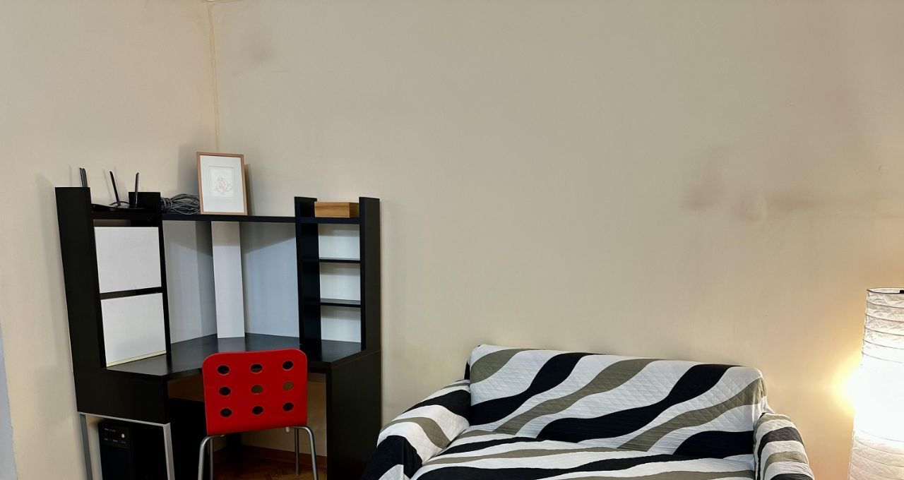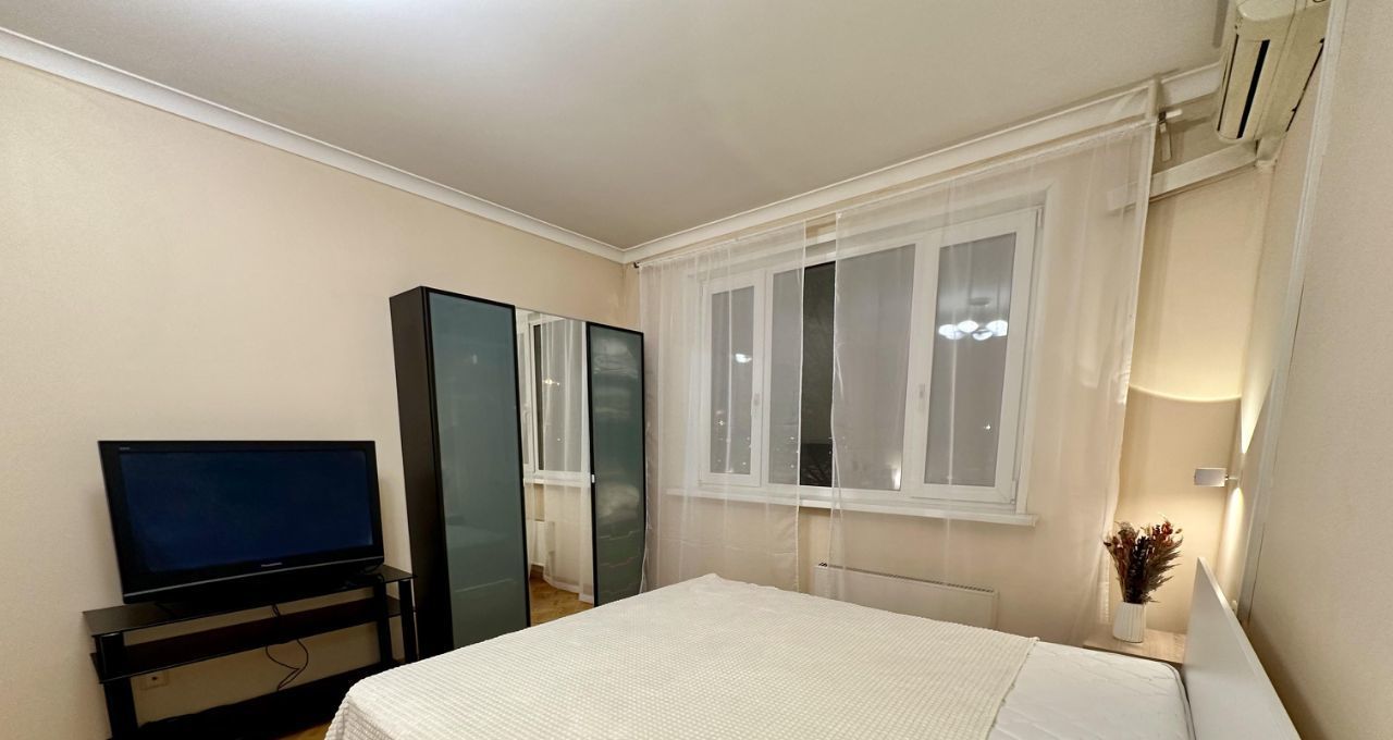 В спальне размещена новая большая двуспальная кровать (180х200) с ортопедическим матрасом, новые прикроватные тумбочки, шкаф, диван с журнальным столиком, а также рабочее место.