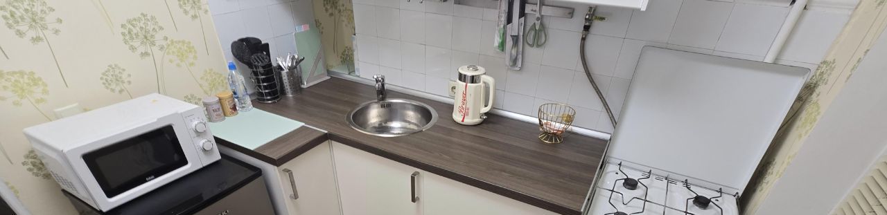 Кухня площадью 5,3 м² оснащена кухонным гарнитуром IKEA со встроенной автоматической стиральной машиной. В квартире имеется полный комплект мебели и бытовой техники, необходимый для современной жизни. Просторный застеклённый балкон станет дополнительным преимуществом.