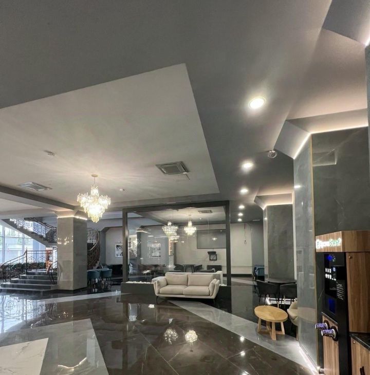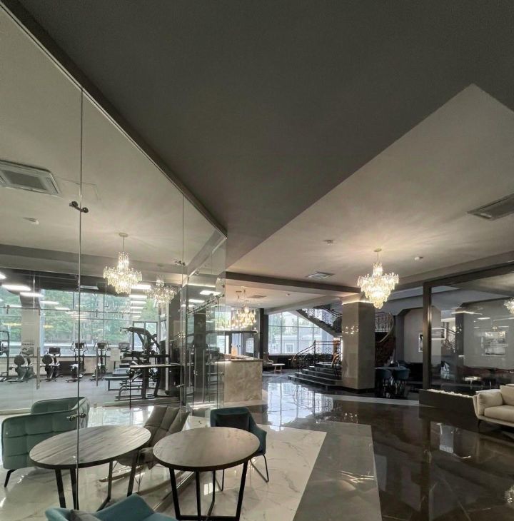 Спортивный зал для жильцов абсолютно бесплатно, большое и уютное лобби на 1 этаже.