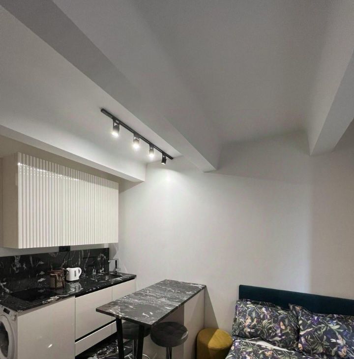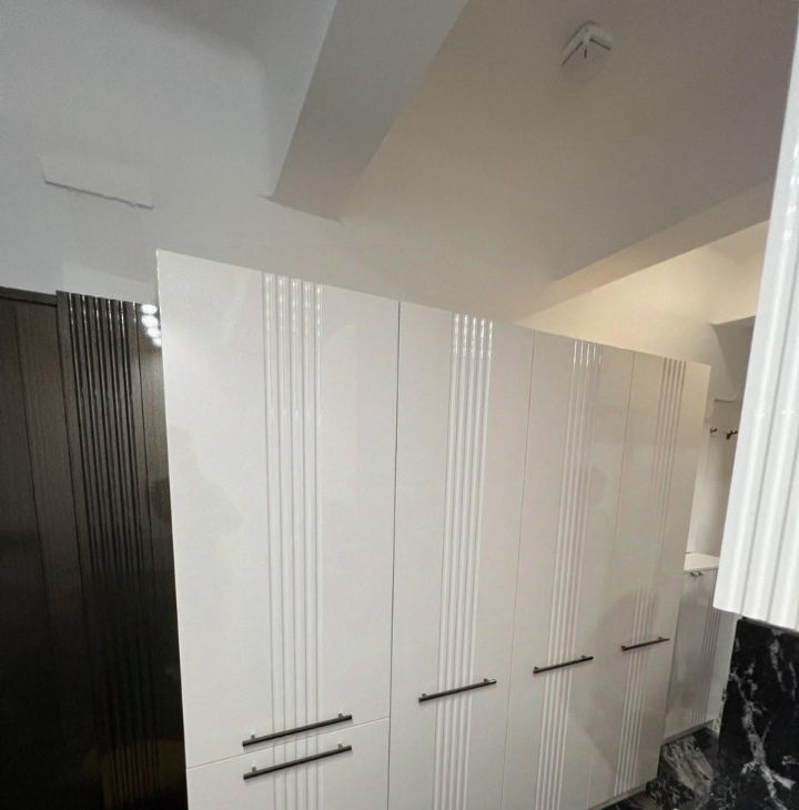 Шикарный ремонт, делали для себя. В такой небольшой площади смогли уместить все необходимое. Есть стиральная машинка с функцией сушки, посудомоечная машина, много места для хранения.