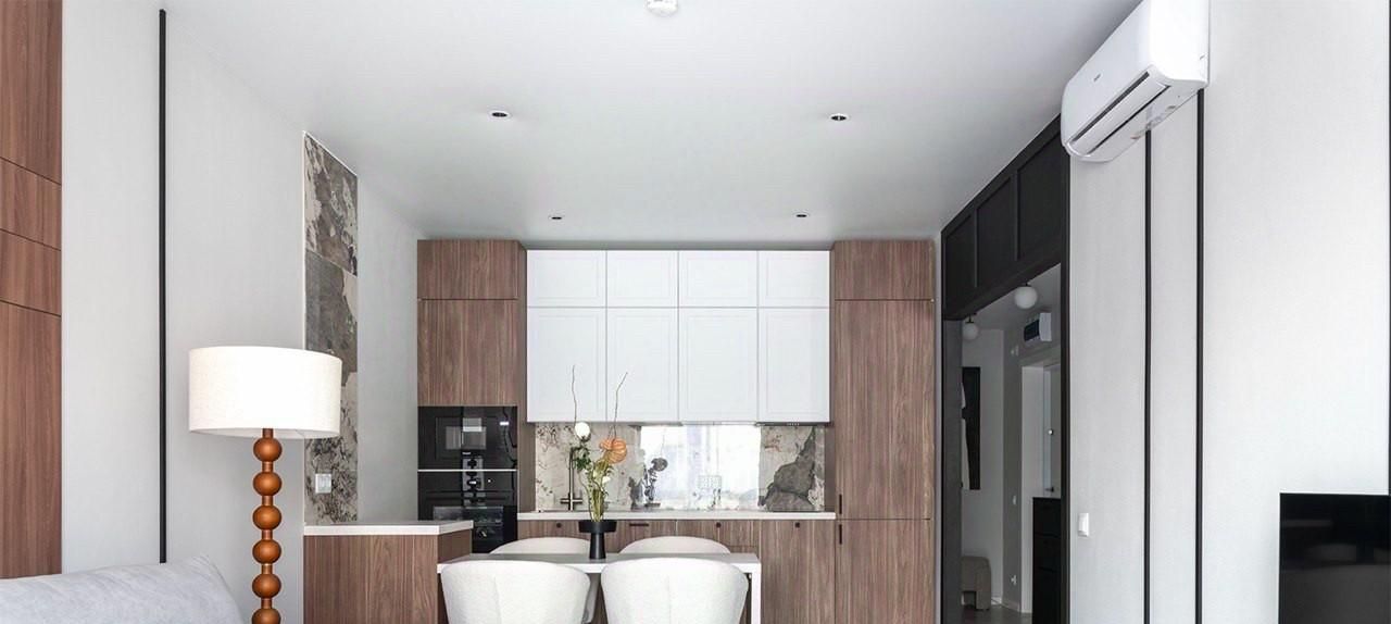 В квартире есть все необходимое для комфортного проживания. Просторная кухня площадью 25 кв. м оборудована современной техникой: холодильником, посудомоечной машиной и стиральной машиной. В комнате и на кухне установлена удобная мебель. В квартире также есть кондиционер и телевизор. Санузел совмещенный, в ванной комнате установлена ванна.