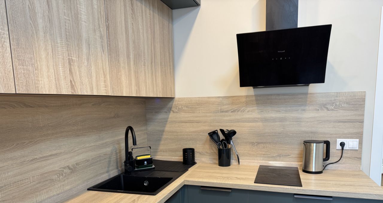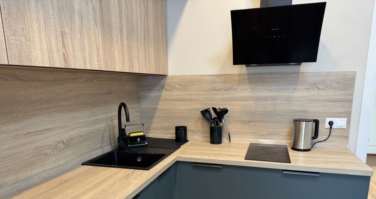 Готова к заезду с тапочками: В квартире есть всё — от новой посуды и постельного белья до утюга и скоростного интернета. Кухня полностью укомплектована.