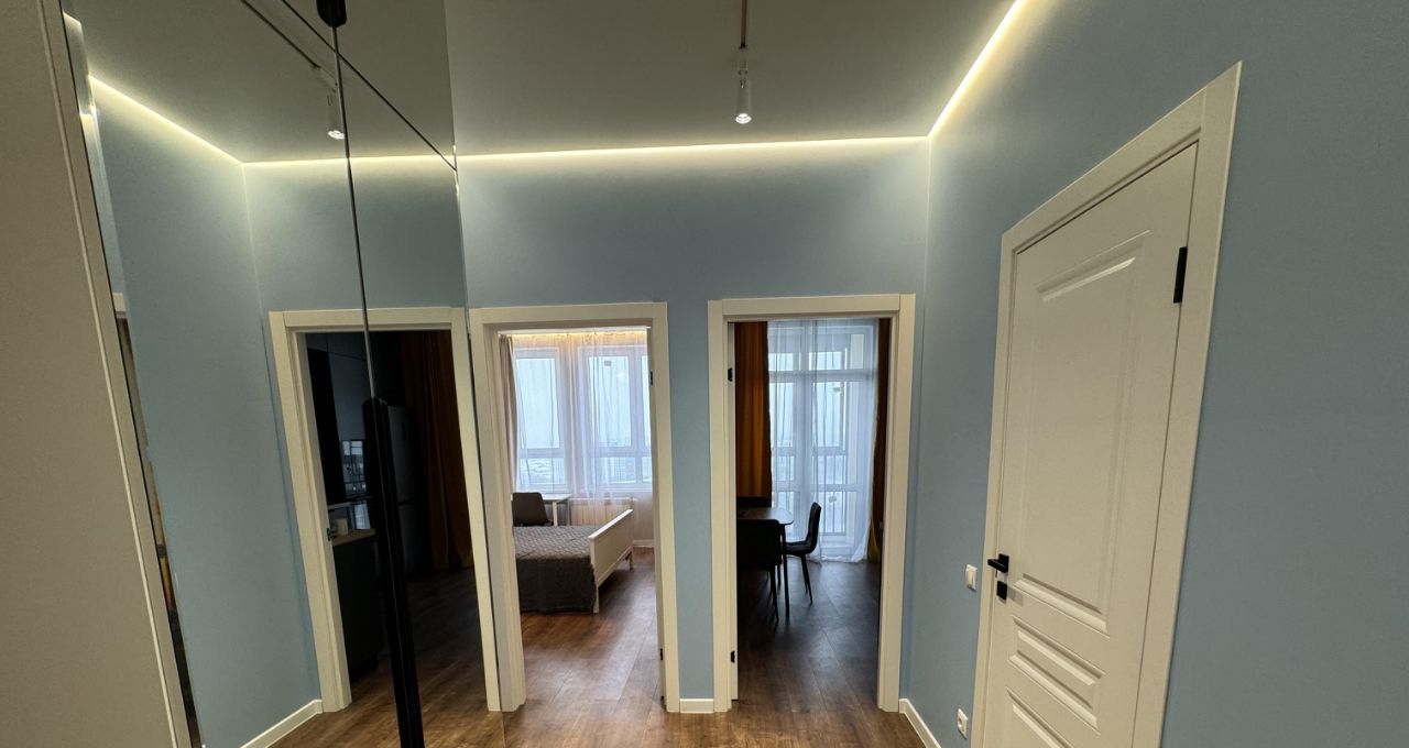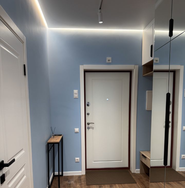 Технологичный комфорт: Мы продумали всё для безопасности и удобства. Установлена система защиты от протечек, сделана качественная шумоизоляция (пол и стены), а мастер-выключатель позволит погасить весь свет в квартире одной кнопкой при выходе.