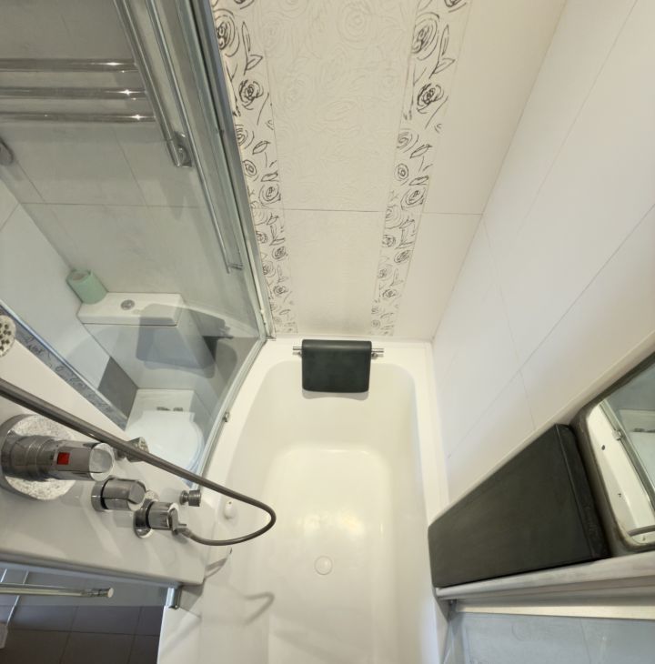 Аккуратный косметический ремонт, чисто и ухоженно. Светлый совмещенный санузел с полноценной ванной. Квартира полностью укомплектована мебелью и техникой — холодильник, стиральная машина, плита, духовка, кофемашина, теплый пол и всё необходимое для комфортной жизни