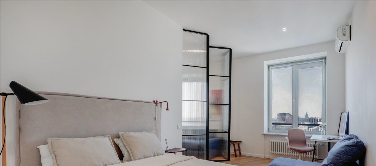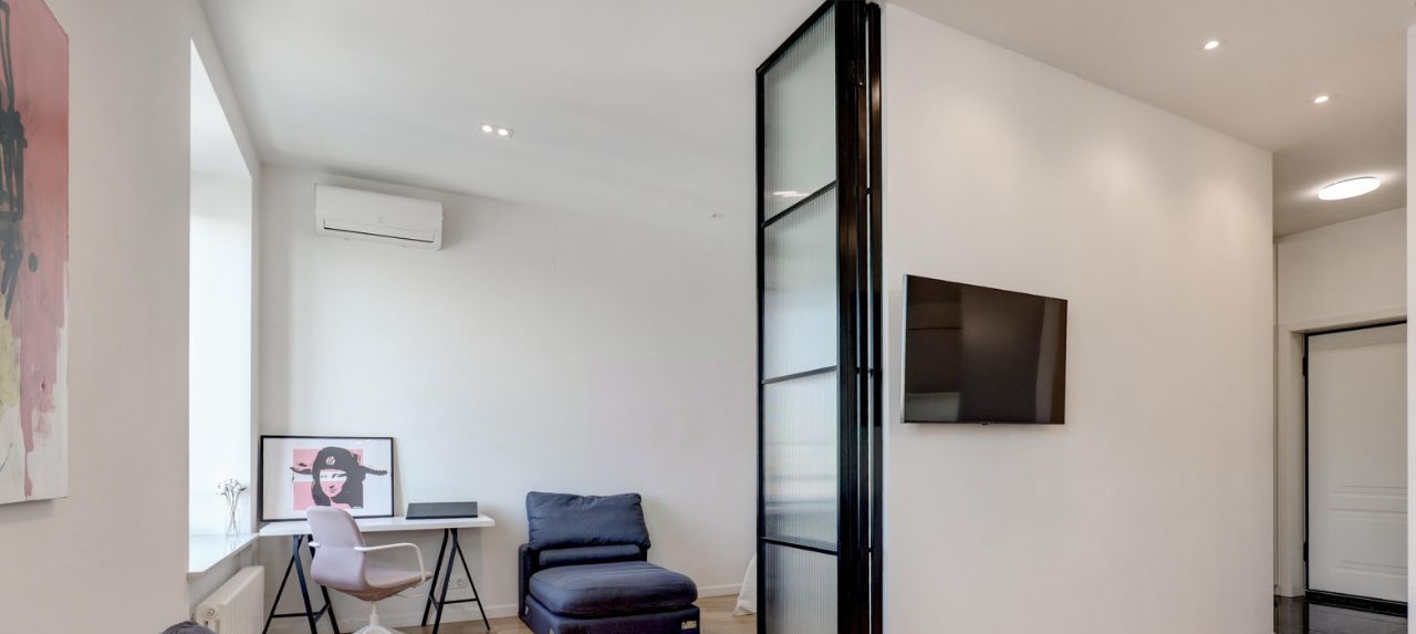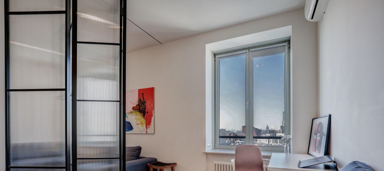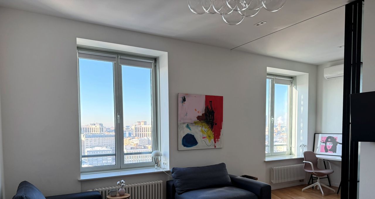 Дизайнерский уютный ремонт в апартаменте с красивыми панорамными видами. Сделана функциональная планировка - просторная кухня-гостиная, отдельная рабочая зона и спальня за раздвижной перегородкой, есть гардеробная и встроенный шкаф для верхней одежды в прихожей. При закрытых окнах в апартаменте не слышно шума с улицы, в доме система приточно-вытяжной системы вентиляции, можно оставлять окна закрытыми на ночь. В отделке использовались дорогие качественные материалы. В апартаменте есть вся техника для комфортного проживания: кондиционер, посудомоечная машина, стиральная машина, микроволновая печь, ТВ, чайник, утюг, пылесос. В ЖК Басманный,5 круглосуточное видеонаблюдение, пост охраны на входе, строгое регулирование шума в неустановленное управляющей компанией время, огороженная территория. Ремонты в доме закончились, в соседних апартаментах давно живут.