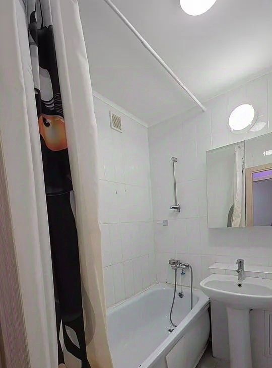 Санузел совмещенный: ванна, стиральная машина.