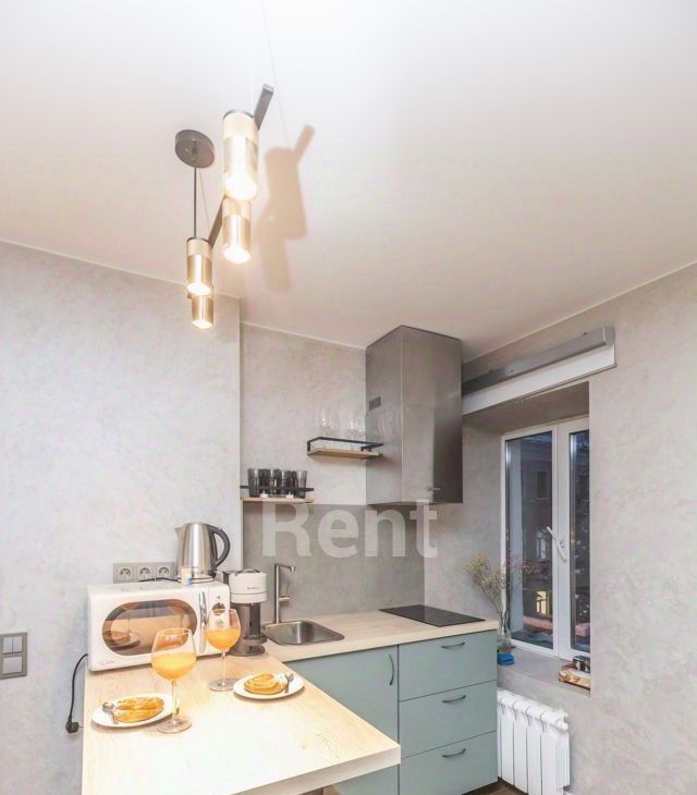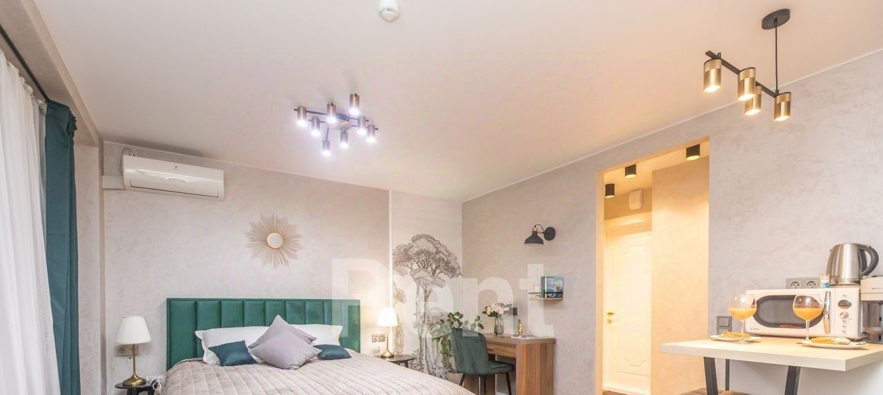 Стильная студия в историческом центре столицы - всего в 6-7 минутах ходьбы от метро "Бауманская". Квартира комфортно меблирована: имеются диван, двуспальная кровать и рабочая зона. Кухня отделена барной стойкой и оснащена гарнитуром с необходимой бытовой техникой. Для комфорта - кондиционер и теплые полы, в ванной - душевая кабина. Функционирует водонагреватель. Установлена стиральная машина.