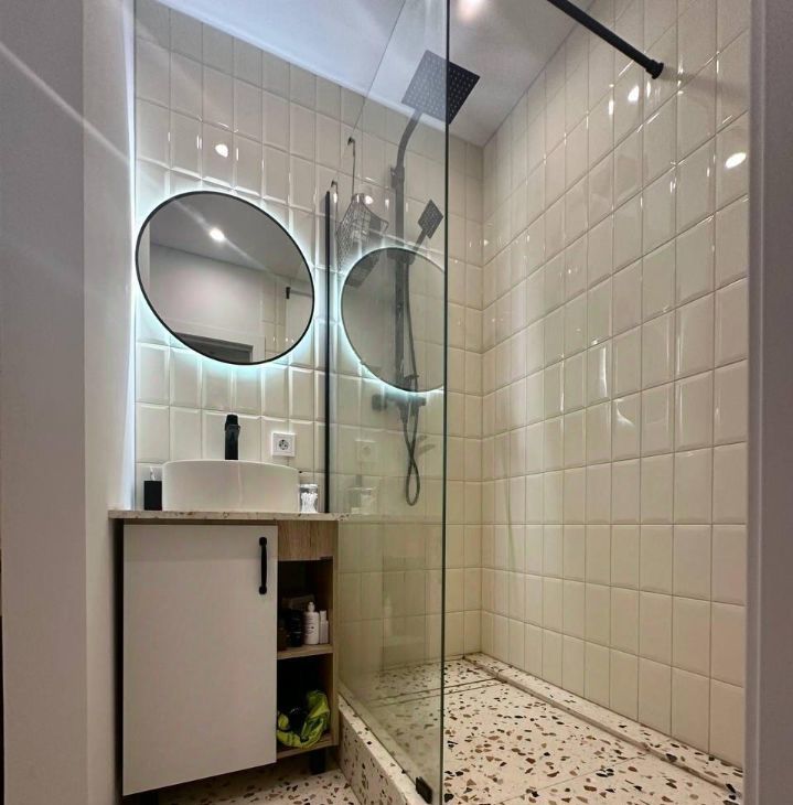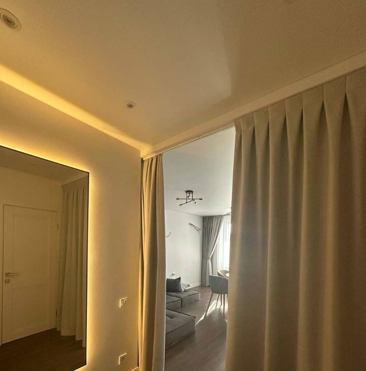 Свежий дизайнерский ремонт в спокойных тонах позволяет добавить яркие элементы любимого цвета текстилем. Большая лоджия оборудована теплым полом и светом, с восьмого этажа можно наслаждаться красивыми закатам. Толстые кирпичные стены обеспечивает хорошую шумомзоляцию .