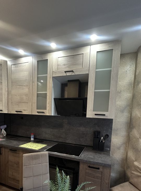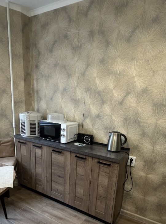 На кухне-очень вместительный шкафчик, новый гарнитур также с новыми посудомоечной машиной, вытяжкой, духовкой, холодильником, микроволновкой, чайником и еще одним очистителем воздуха. Полы на кухне с подогревом.