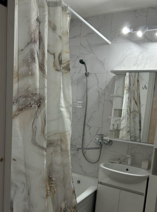 В ванной комнате новая мебель, сантехника, стиральная машина, ванна-чугунная. Полы в ванной теплые.