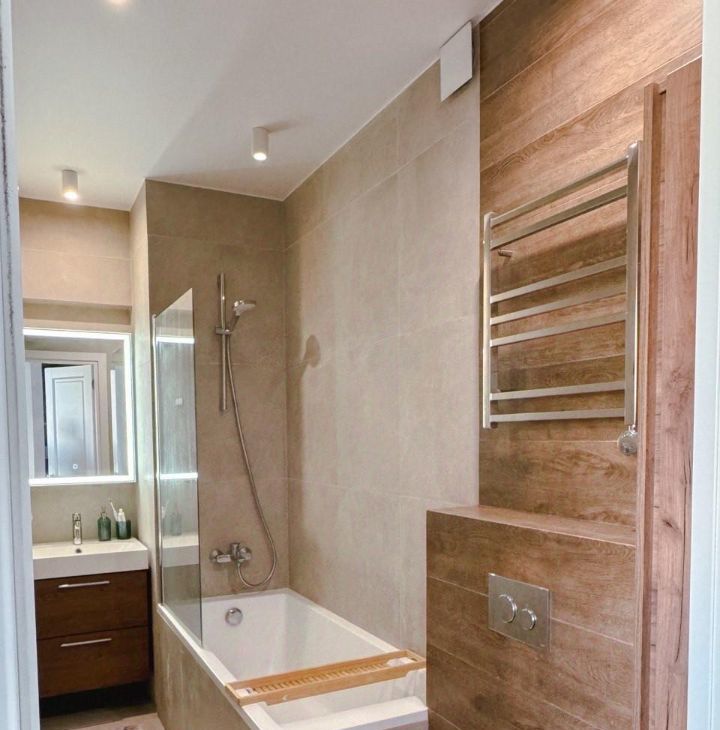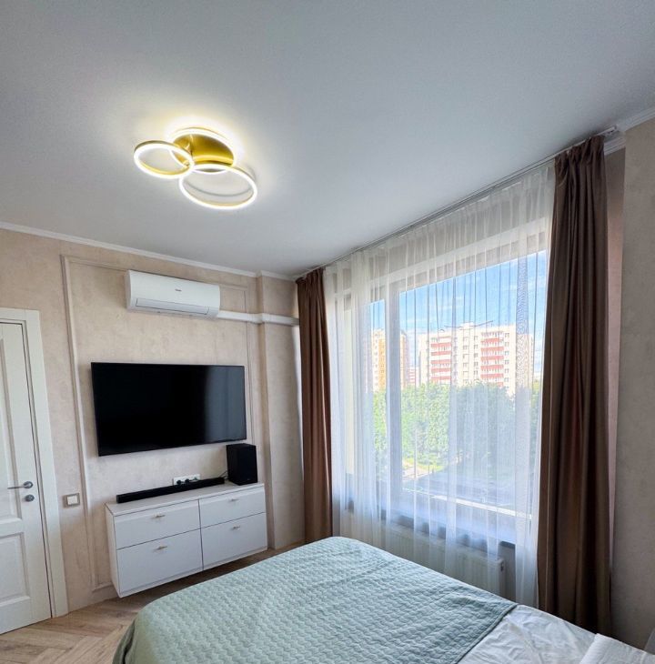 Квартира полностью меблирована и оснащена всей необходимой техникой: кондиционер, холодильник, посудомоечная и стиральная машины, а также телевизор. Ванная комната оборудована ванной. Совмещенный санузел выполнен в современном стиле. Все готово для вашего комфортного проживания.