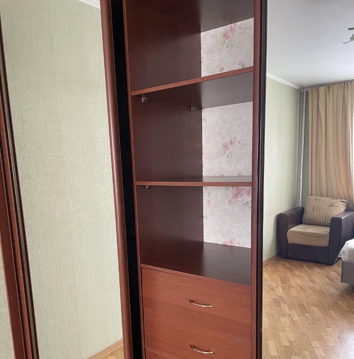 Квартира полностью меблирована. В комнате встроенный просторный зеркальный шкаф-купе на всю стену, мягкая мебель (новая кровать и кресло). В зале кондиционер.
