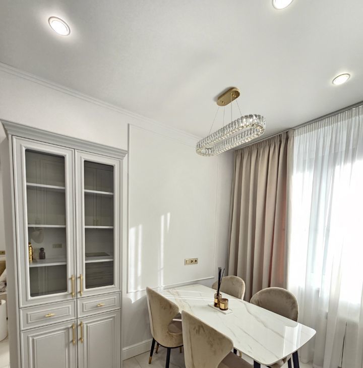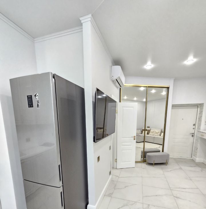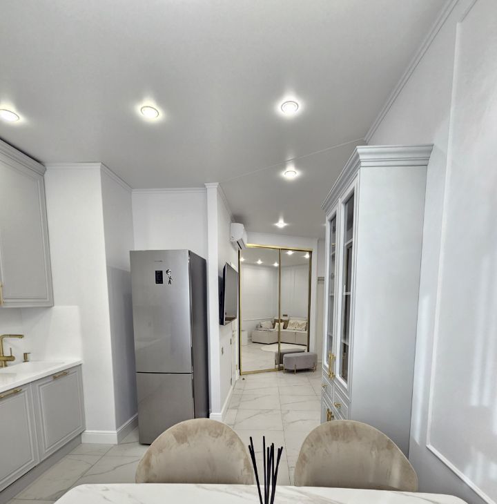 1) Впервые в аренде. Квартира ранее никогда не сдавалась. 2) Предлагается стильная квартира общей площадью 43.5 м² с новым ремонтом и полной комплектацией. 3) Квартира после качественного дизайнерского ремонта, выполненного в ноябре 2025 года. После ремонта никто не проживал — всё абсолютно новое. Полностью готова к заселению: заезжай и живи без дополнительных вложений. 4) Продуманное зонирование и много естественного света. 5) В квартире предусмотрено много мест для хранения: — 2 вместительных шкафа-купе с продуманной системой внутреннего хранения. 6) Кухонный гарнитур от компании Стильные кухни, встроенная техника Korting: индукционная варочная панель, духовой шкаф с расширенным функционалом, микроволновая печь, посудомоечная машина Kuppersberg, вытяжка Elica, холодильник Samsung. Стол обеденный под мрамор с 5-ю стульями. 7) Бытовая техника: