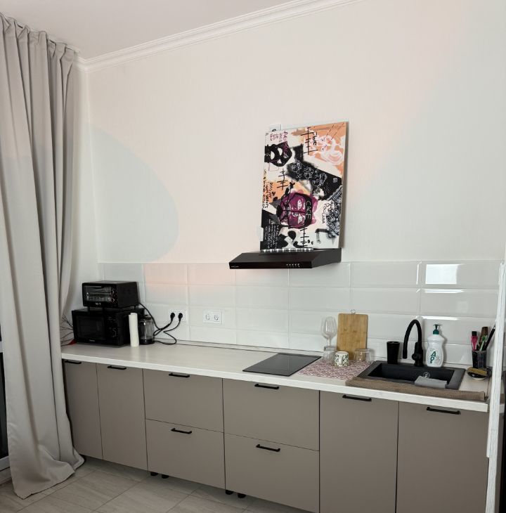 Квартира в хорошем состоянии большая часть мебели новая, большая удобная кровать со встроенным местом для хранения вещей , открытый и вместительный гардероб, два больших зеркала, комод , тумбы , обувница , телевизор , стиральная машина с сушкой, интернет, микроволновка , мини печь, новый холодильник , плита электрическая, сушилка, гладильная доска а так же большой видовый балкон где можно сделать лаундж зону , а так же визуально расширить пространство . В доме есть консьерж , четыре лифта , камеры , вокруг магазины и кофейни а так же шикарная набережная для прогулок.