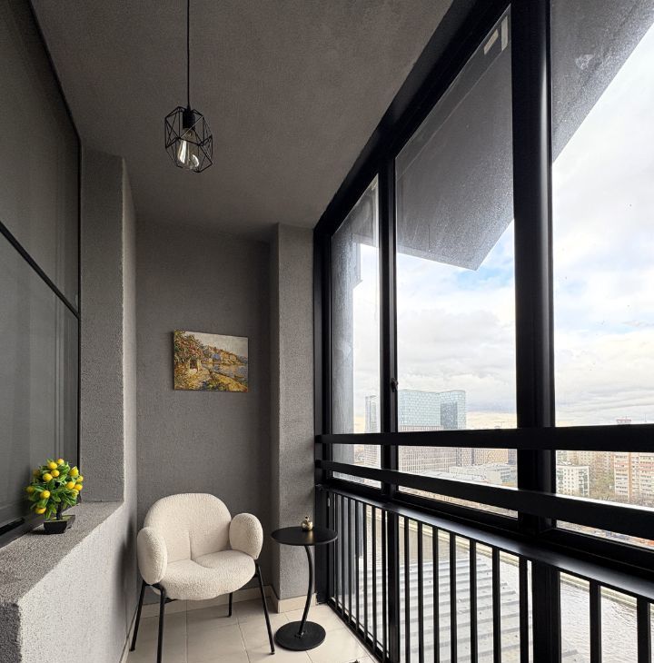 Лоджия с шикарным видом на Москва-Сити и Москва-реку.