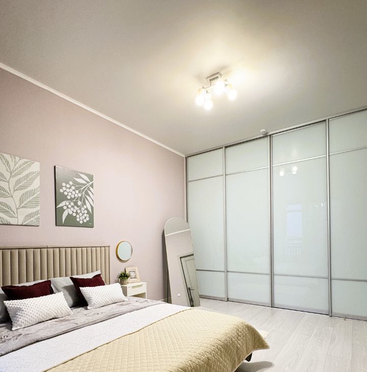 Функциональная планировка. Просторная спальня 21 м, новая мебель. Вместительная гардеробная комната с системой хранения.