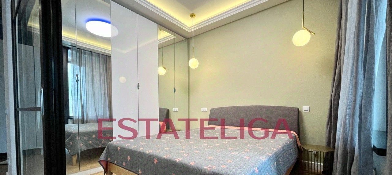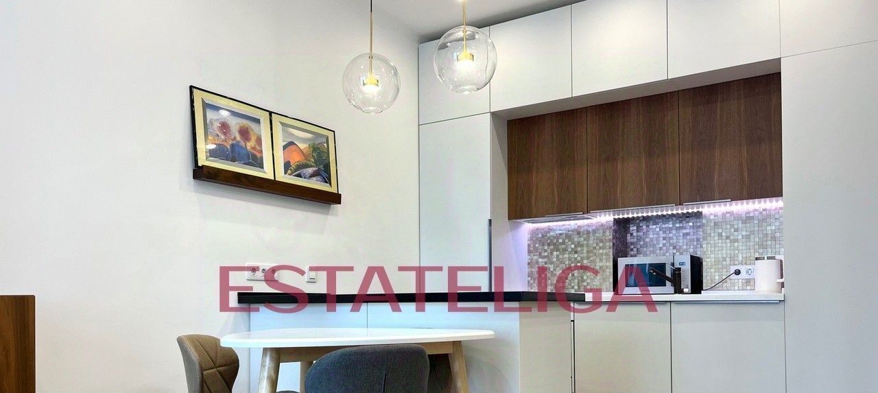 Функциональное и уютное зонирование апартамента: кухня-гостиная, спальня с выходом на панорамную лоджию, совмещенный санузел с душем, коридор Много мест для хранения. Апартамент оборудован всей необходимой импортной бытовой техникой: посудомоечная и стиральная машины, варочная панель, микроволновая печь, холодильник.