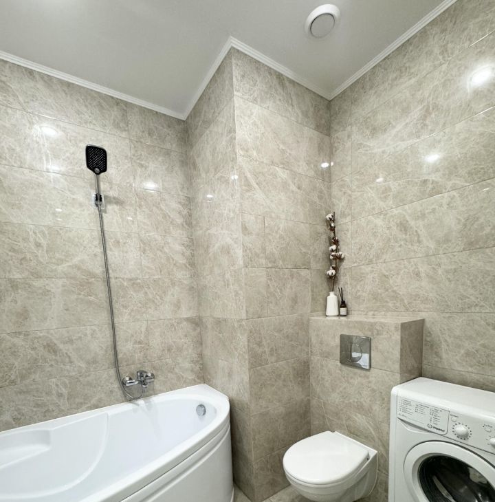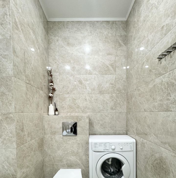 Ремонт выполнен в светлых тонах из качественных материалов.