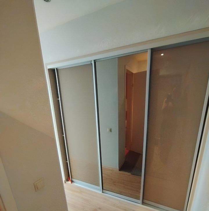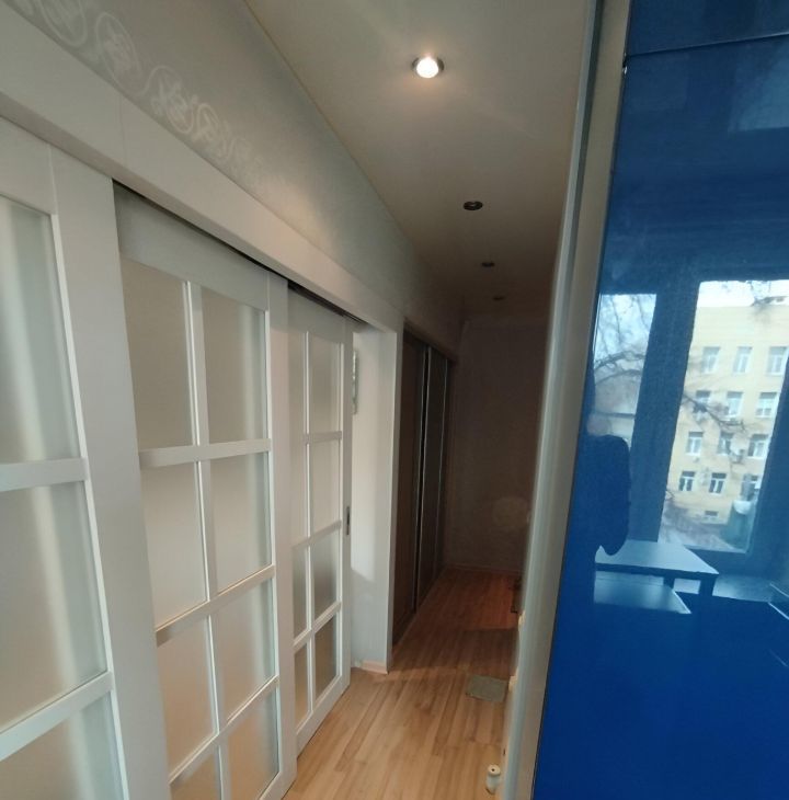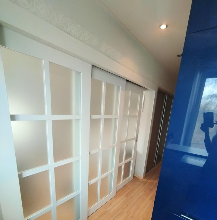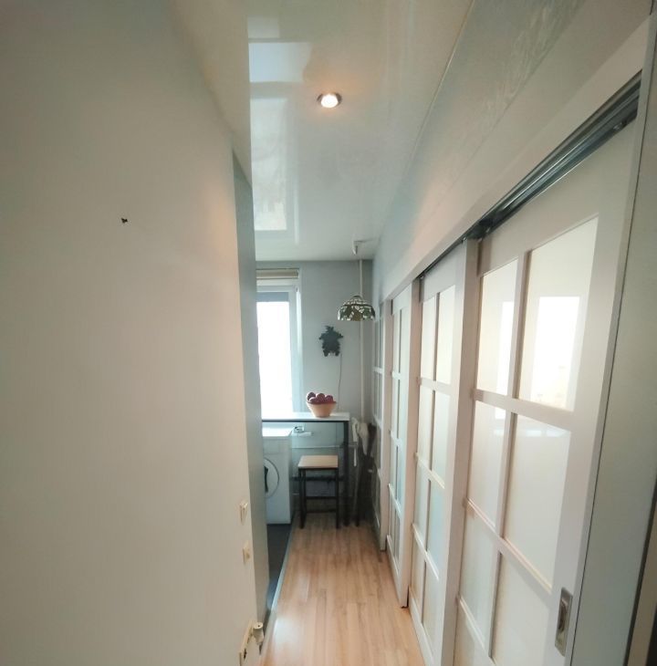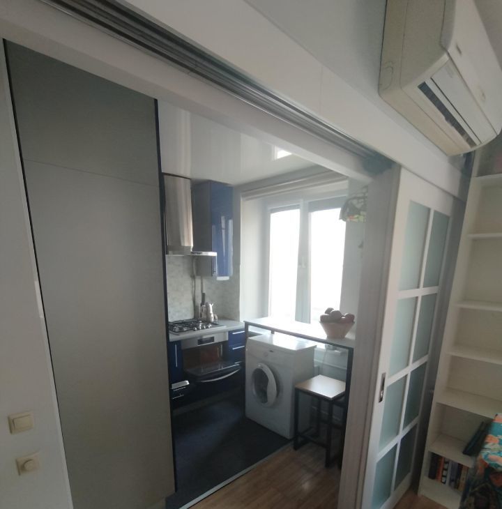 однокомнатная квартира, можно полностью отделить кухню от комнаты с помощью раздвижной перегородки.