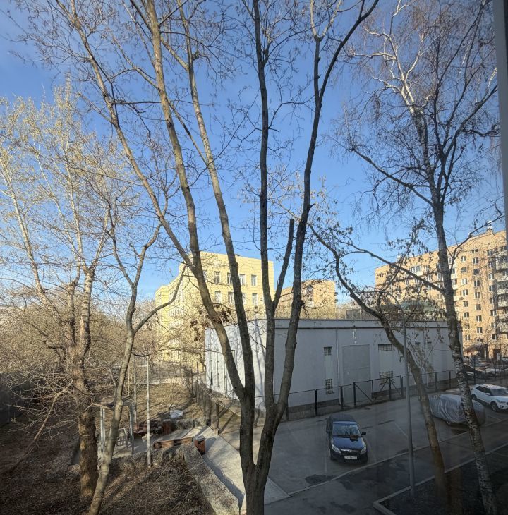 Квартира выходит окнами на тихий двор. придомовая территория ухожена и огорожена шлагбаумами.
